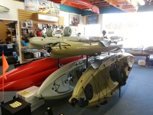 Besides these general considerations, there are a number of kayak fishing features specific to various models of kayaks, so shop around and find the features that appeal to you! Hobie makes one of the most popular features, a foot controlled pedal system called the mirage drive, amongst many other fishing friendly accessories and add ons. Give us a call or email and we'd be happy to give a full run down on what makes Hobie Kayaks the best in the kayak fishing business.