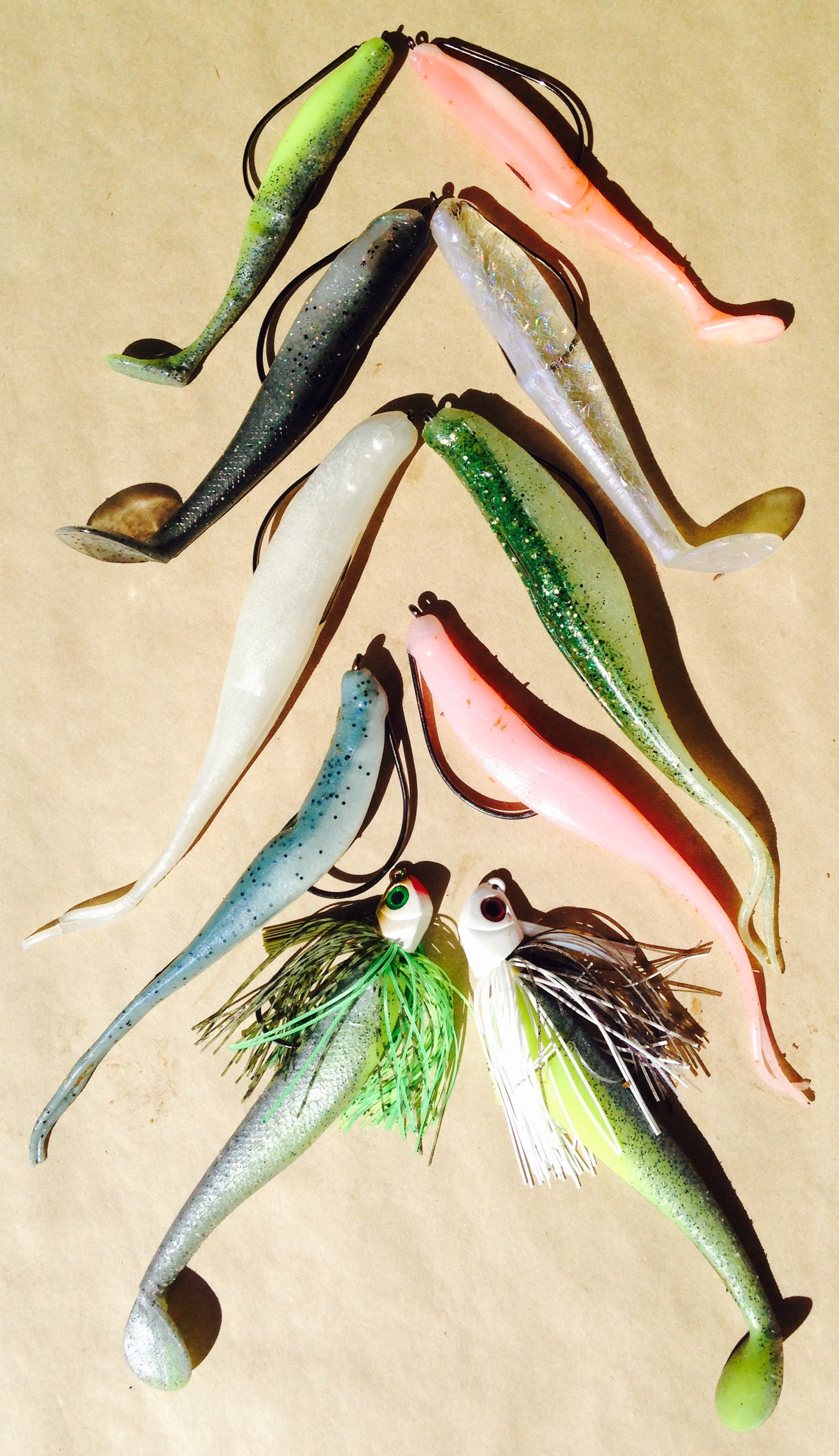 6” SwimmerZ in Sexy Mullet +SwimJig in matching Chartreuse skirted weedless swimjig.